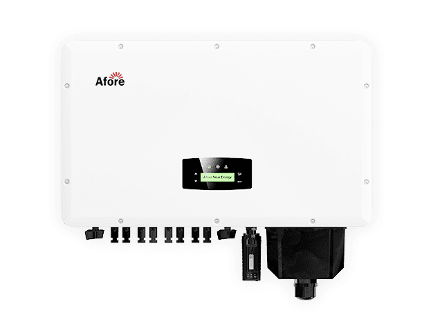 Afore BNT050KTL je snažan trofazni mrežni inverter namijenjen komercijalnim i industrijskim solarnim elektranama. Opremljen je s tri MPPT trackera (7 string ulaza), podržava PV oversizing do 150 %, ima integriranu DC i AC prenaponsku zaštitu tipa II te inteligentno ventilatorsko hlađenje. Podržava Wi-Fi komunikaciju (standardno) uz opcije Ethernet i GPRS te MODBUS protokol za nadzor i integraciju u SCADA sustave. Više na AFORE